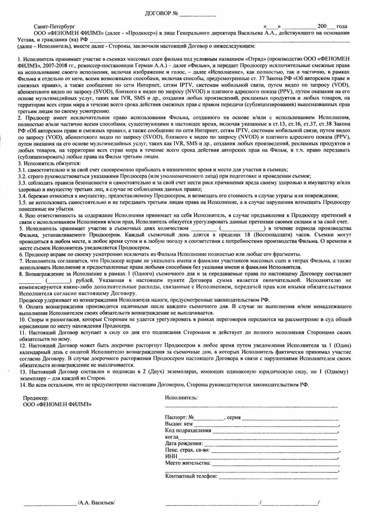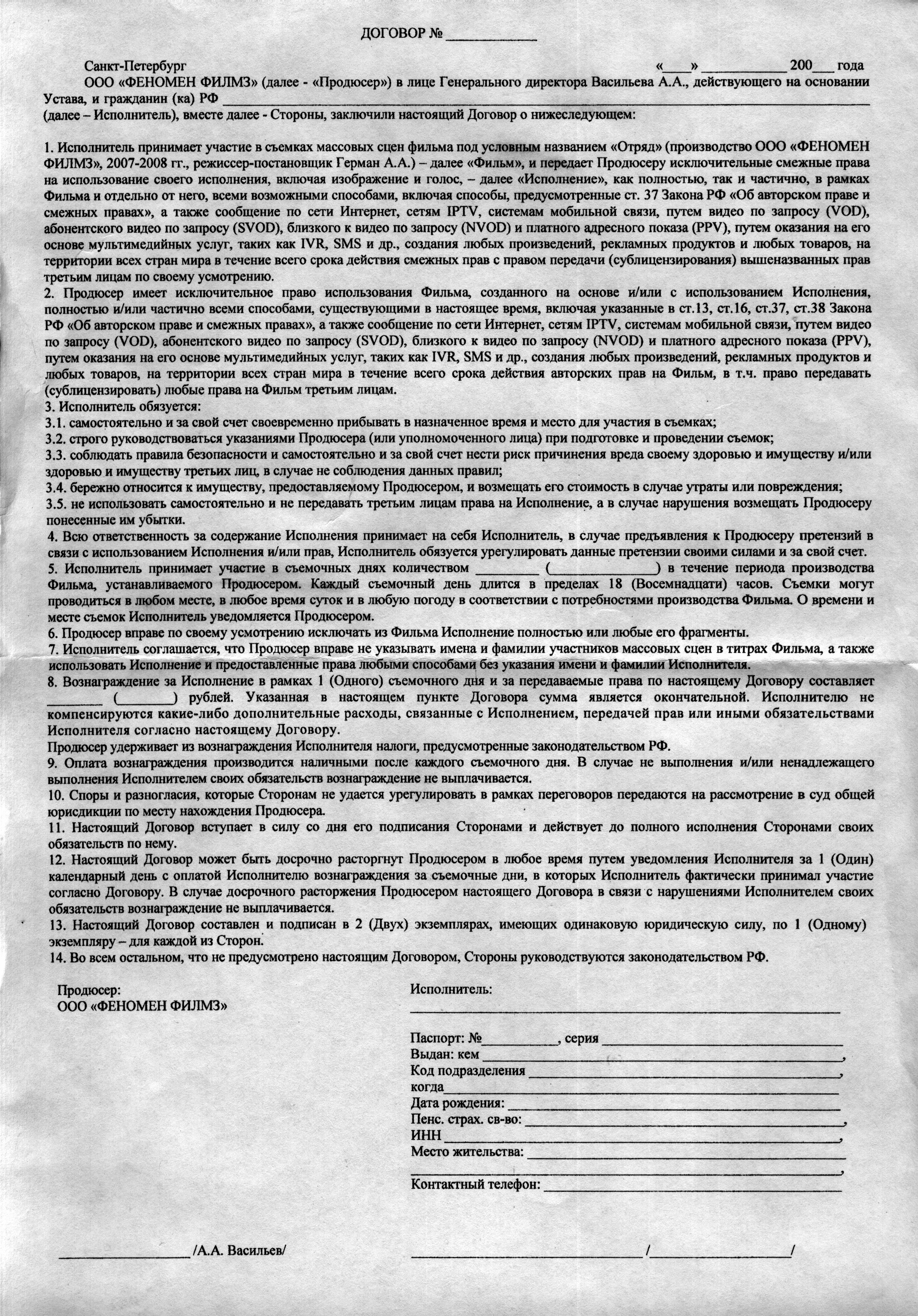 Текст договора с Ленфильмом, или о том, как набирают рабов (161k)