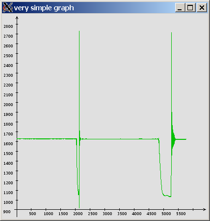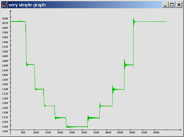 софтинка читает параметры из переменных окружения, всасывает шрифт из файла, инициализирует большое серое окно и приступает к работе. Работа софтинки заключается в следующем: читаем ASCII строку с стандартного ввода, интерпретируем её как число, рисуем график. по оси Х - номер отсчёта, по оси Y - значение отсчёта. Отсчёты всасываются довольно тупо, интерпретируются как "просто целое", так что при наличии префикса "0x" они будут интерпретированы как шестнадцатеричные, а при наличии префикса "0" как восьмеричные.